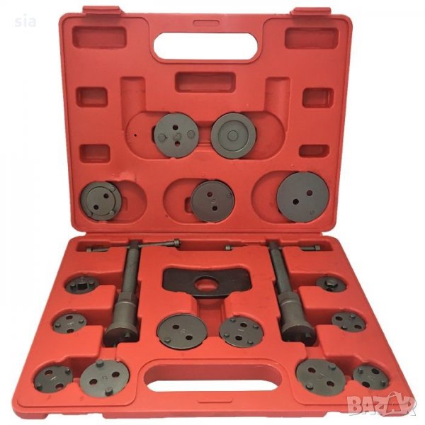- Професионален комплект от 18 части за сваляне на спирачни цилиндри, необходими за ремонт на превозни средства, оборудвани с дискови спирачки.