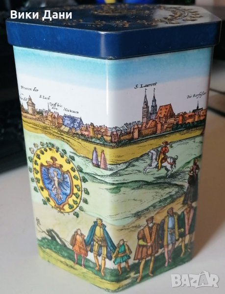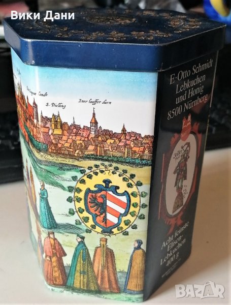 рядка ретро E. Otto Schmidt Nurnberg ламаринена кутия бисквити Западна Германия → Обява 33628870