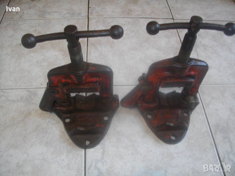 Менгемето е масивно ,от дебела стомана, със запазен външен вид и отлично техн. състояние - въртока и резбата се въртят много добре и съвсем леко, без никакво запъване. Челюстите няман никакво износване - масивни металин са - държат здраво и стабилно. Сменяеми са. Основата е с разпробити фабрино три дупки за захват към ралотен плот/маса.