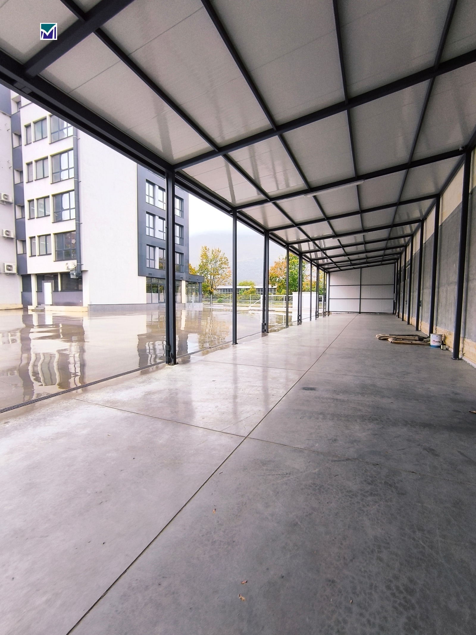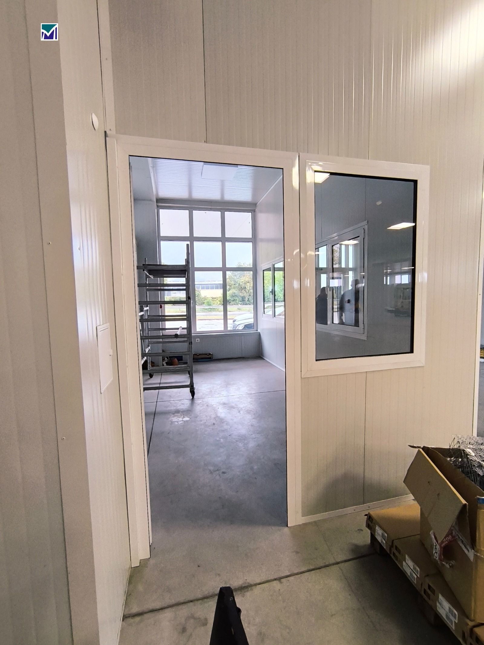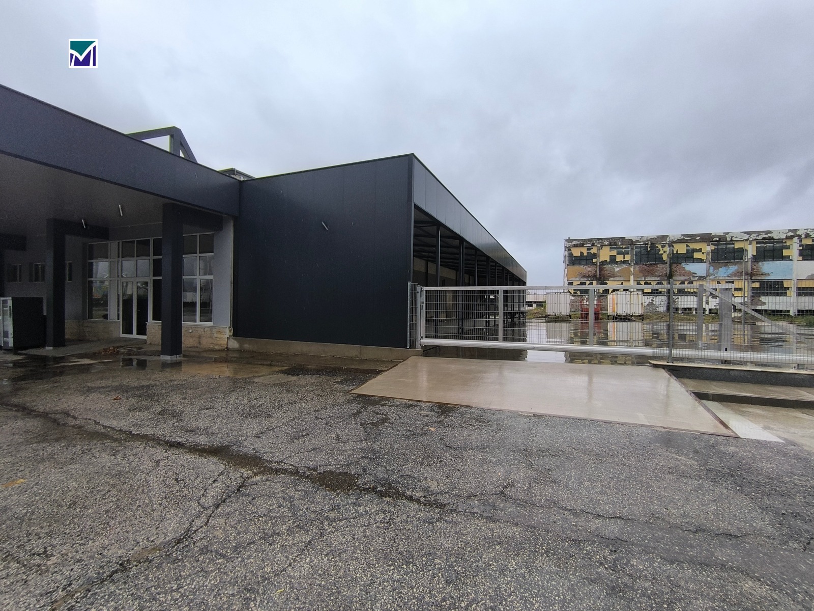Дава се под наем промишлено помещение със собствен терен в Хранително - вкусовата зона на гр. Враца. Помещението е подходящо за склад с търговска част, производство, търговско представителство и други. Намира се на главен път Е-79. Всичко е основно ремонтирано, подовете са с шлайфан бетон на едно ниво и достъп до двора и паркинга пред сградата с мотокар. Стените и таваните са облицовки, има изградено офис- помещение. Канализацията на обекта е пригодена за производствени нужди, ел.енергия и вода. Целият прилежащ терен е бетонирана площадка с пряк достъп от главния път и достатъчно място за маневриране с товарни камиони. Имотът има портален вход, самото помещение е с два товарни входа и два разтоварни входа. Има изграден покрит метален навес до сградата с площ 216 кв. м, който може да бъде затворен. Покривът на помещението е основно ремонтиран с термопанели, дограмите са сменени, разполага и със санитарен възел също основно ремонтиран. Порталните входове са с панелни врати от висок клас.Помещението е с площ 891 кв. м., метален навес 216 кв. м и парцел към сградата 5110 кв. м. Изключително комуникативно място - имотът е годен за производствено-търгсвска база, логистична база, склад и всякакъв вид други дейности. В безупречно състояние.