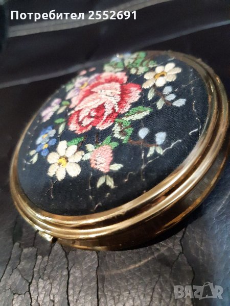 Винтидж огледало с пудриера. Ръчно бродирано. Диаметър-7,5см.