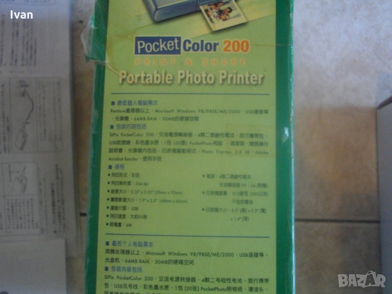 Нов Портативен Малък Цветен Принтер-Копир-Скенер-Печата Снимки Моментни-POCKET COLOR 2000