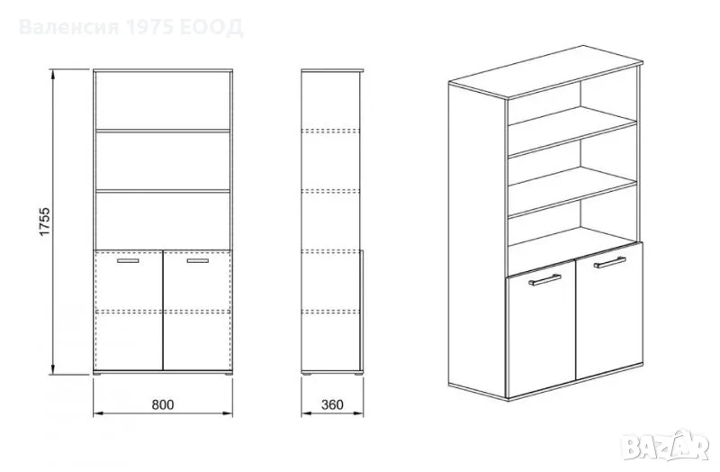 Етажерка с три ниши, две вратички и рафт.