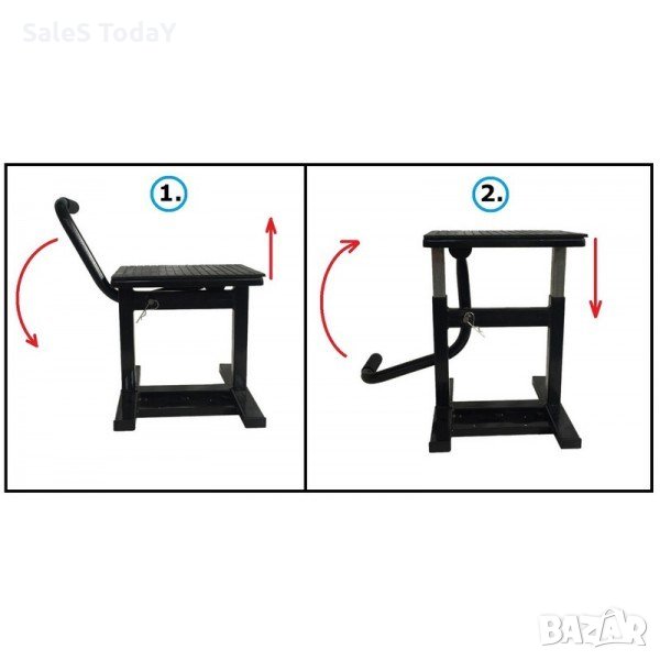 44185 -код, Цвят червенМотокрос стойка.Подходяща за марките DUCATI, KAWASAKI, SUZUKI, HONDA, YAMAHA и др.Универсална за всички кросови и ендуро мотори.Регулиране на височината.Максимално натоварване: 160кг.Лост за лесно и стабилно повдигане.Предназначена за продължителна употреба.