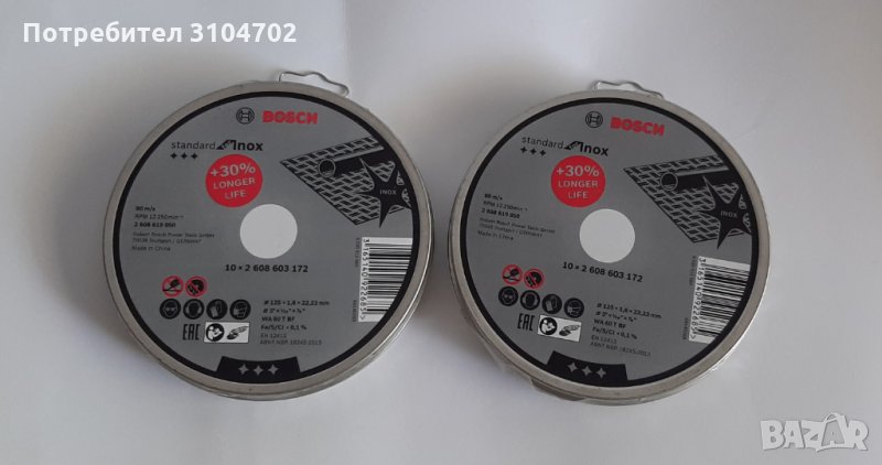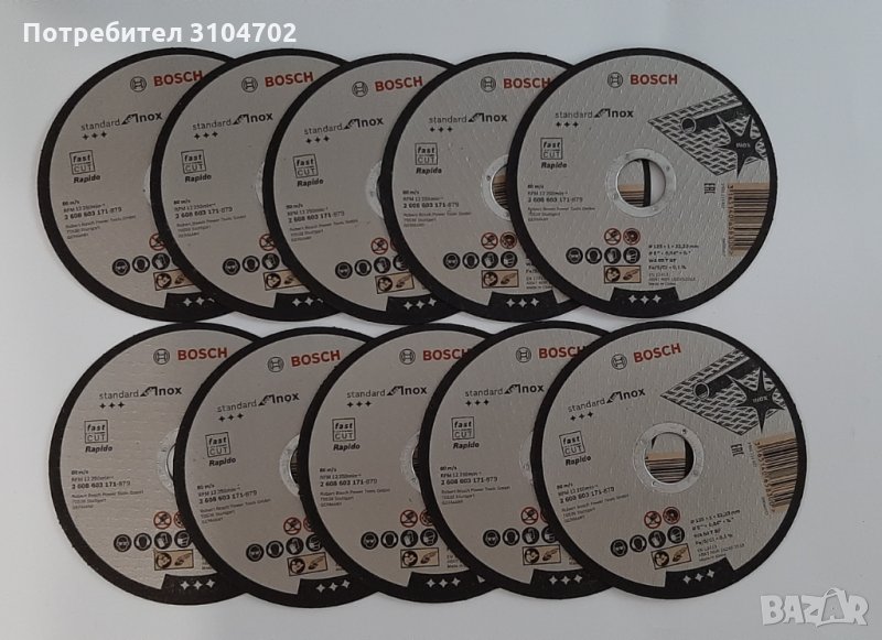 Дискове Bosch Standard for inox за рязане на стомана ф125x1мм-10бр, 2608603255 → Обява 33654436