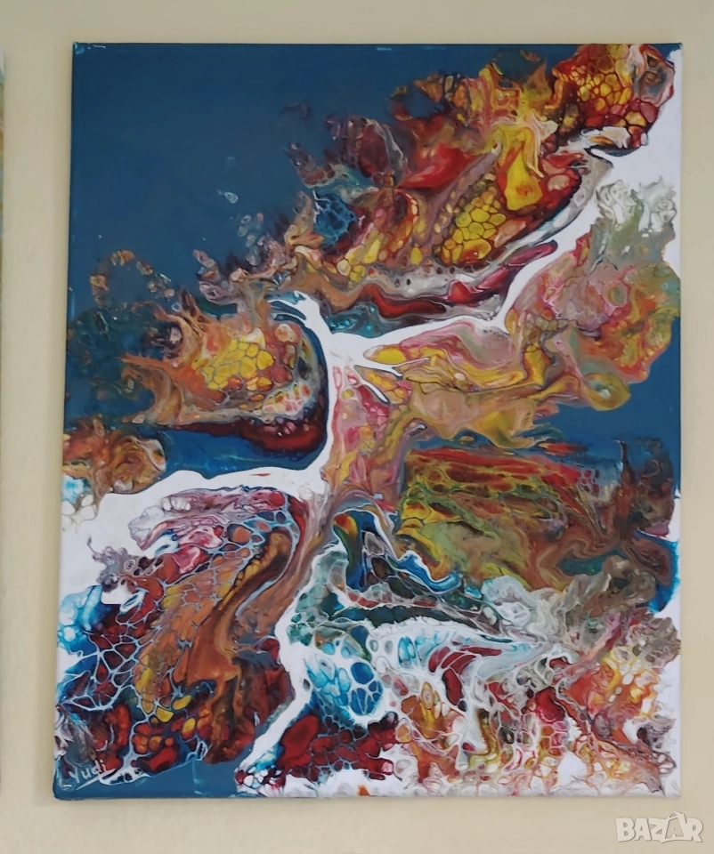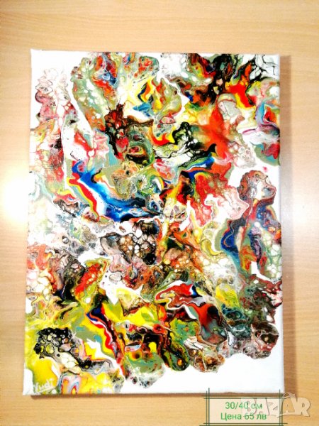 Акрил абстрактна импресия 30/40 см, авторски ,върху платно защитено със силиконово покритие.