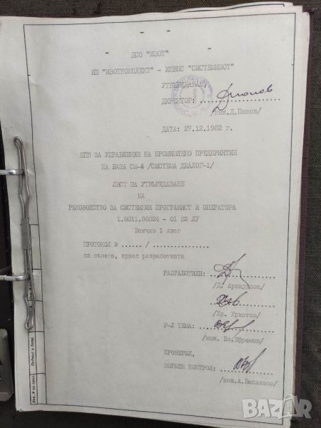 3. Диалог 1 . Ръководство за системния програмиист и оператора- Лист за утвърждаване с подписи на разработките и директора на СистемИзот-180 стр