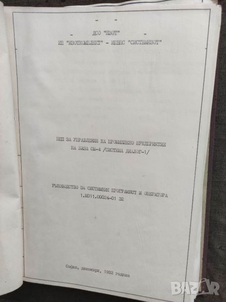 1. Диалог 1 ( ППП за управление на предприятие на база СМ-4) -Ръководство за потребителя -1982г . 250 стр.