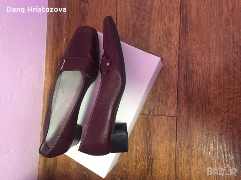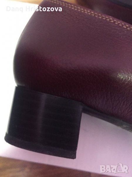 Тъмно червени, естествена кожа, стелка-24,5см, ток-3 см.Вторият чифт обувки не са налични- качени по погрешка