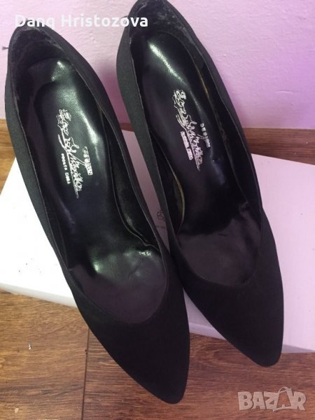 Елегантни черни обувки от плат, от Италия, ток9см,стелка-24см,