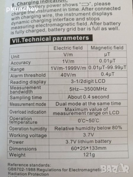Уред за измерване на електромагнитна радиация EMF meter
