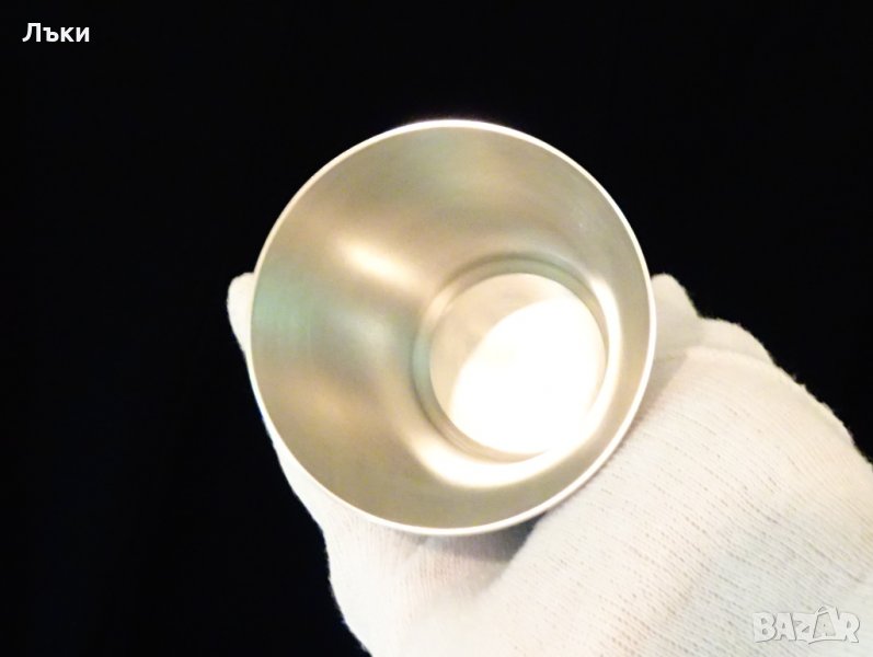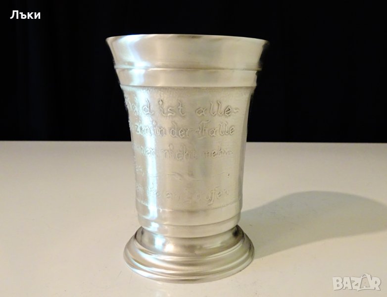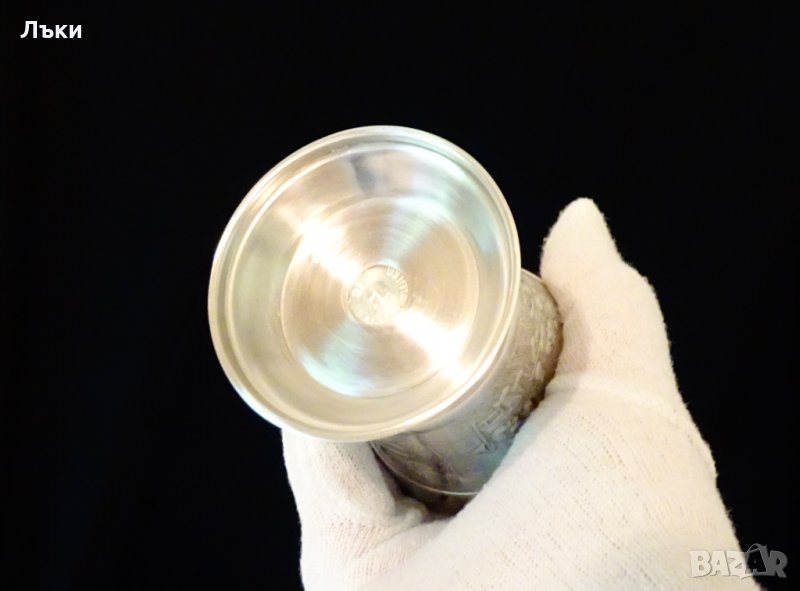 изработена от 95% калай и 5% сребро,маркирана.Чашата има релефна картина с
