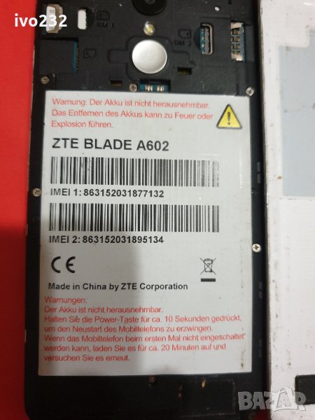 zte blade a602 в лош вид но си работи много добре,тъча не е засегнат,отключен е към всички оператори.