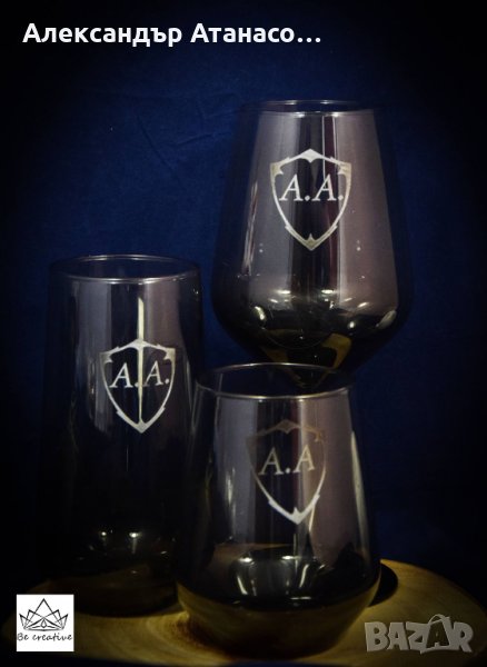 Персонализиран сет стъклени чаши в кристално черен цвят , снимка 1 - Други - 33666053 1/1