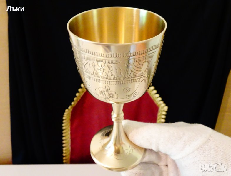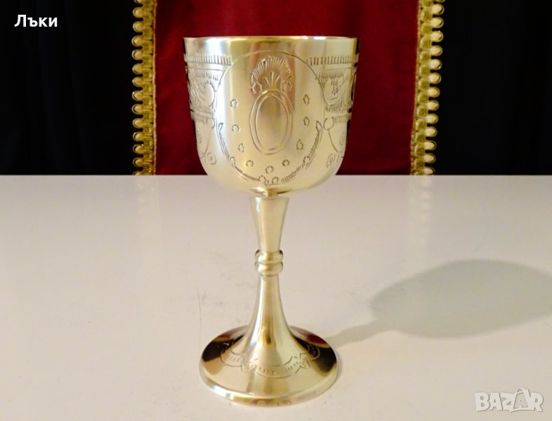 Високо качествен бронз.Маркиран E.P.N.S. Бокала е релефно гравиран с красиви барокови орнаменти в стил рококо.Аристократичен дизайн,безупречно качество и златен