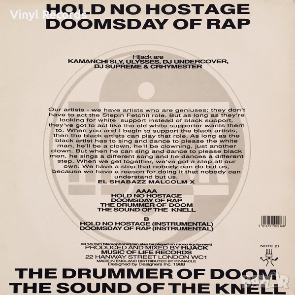 Hijack ‎– Hold No Hostage / Doomsday Of Rap ,Vinyl 12" → Обява 33676290
