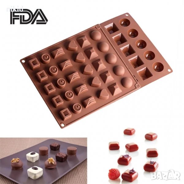 микс 30 бонбона бонбони силиконов молд за направа шоколадови квадрат сърце пирамида сфера форма → Обява 33676869