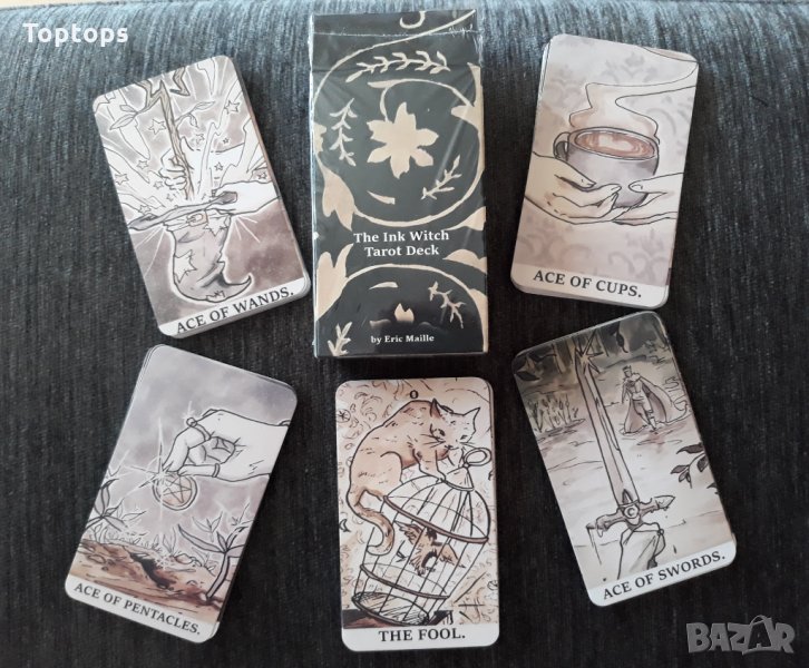 - The Ink Witch Tarot- Ink Witch Tarot, размерът им е 11см х 6,5см, колодата е създадена от Erik Maille.