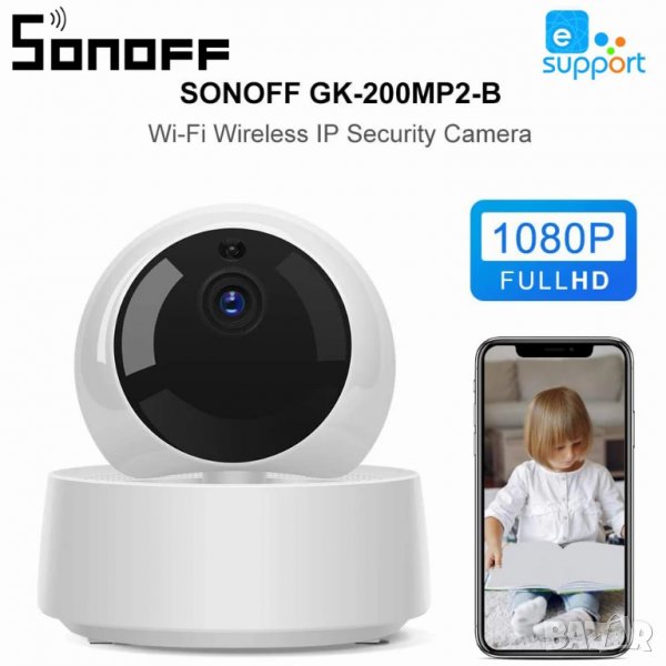 SONOFF GK WiFi, охранителна камера за сигурност, нощно виждане, видеонаблюдение, сот, бебефон, аларм