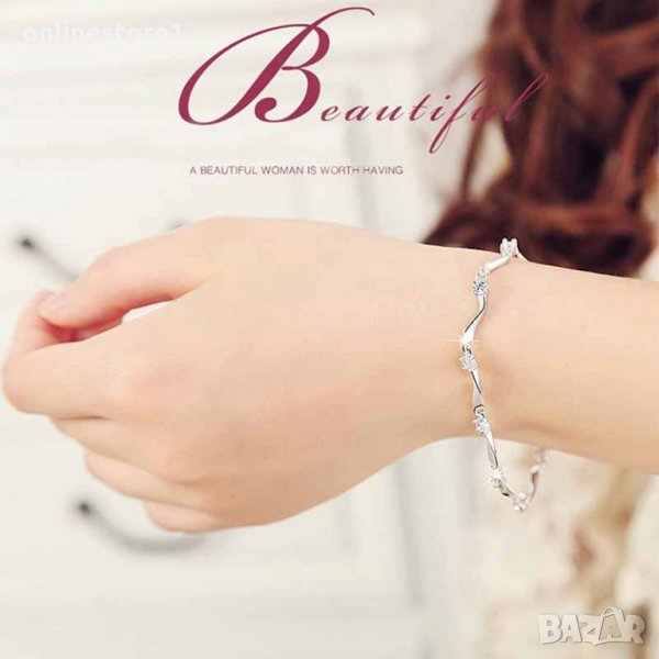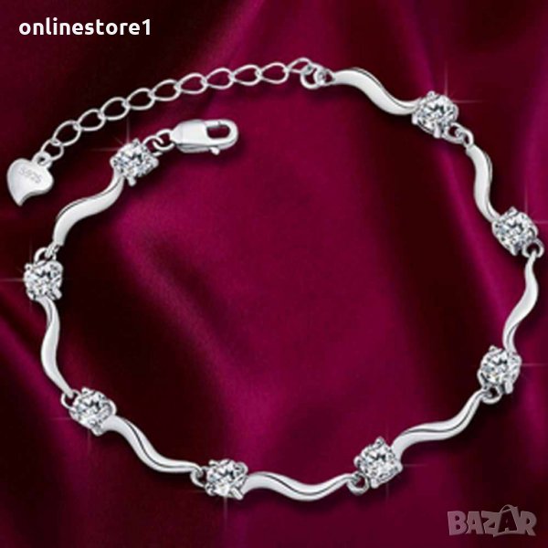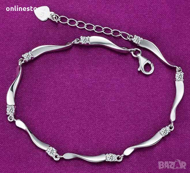 сребърна гривна с нежни циркони,стилните женствени извивки я правят