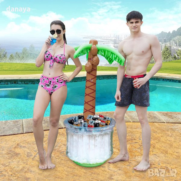 палма. Изключително атрактивна надуваема играчка, в която може да изстудявате своите напитки или да си играят вашите деца. Истински подвижен оазис! Представлява надуваема кофа, в която може да поставите лед, а между него любимите питиета. Това надуваемо палмово дърво е идеално за летни партита, партита за рождени дни, тематични партита, партита на басейна, декор за снимки и за семейни забавления.