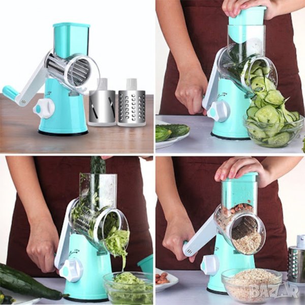Кухненско ренде - мелничка. Многофункционален ръчен зеленчуков шредер на барабан с 3 рендета от неръждаема стомана.
