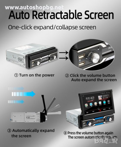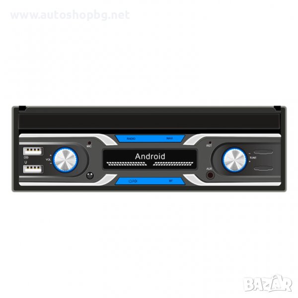 Единичен Дин мултимедийна система със 7 инчов тъч скрийн екран и oперационна система Android .Размерите на медийте са за стандартен монтаж 178мм х 50мм. Подходяща за масовите автомбили.