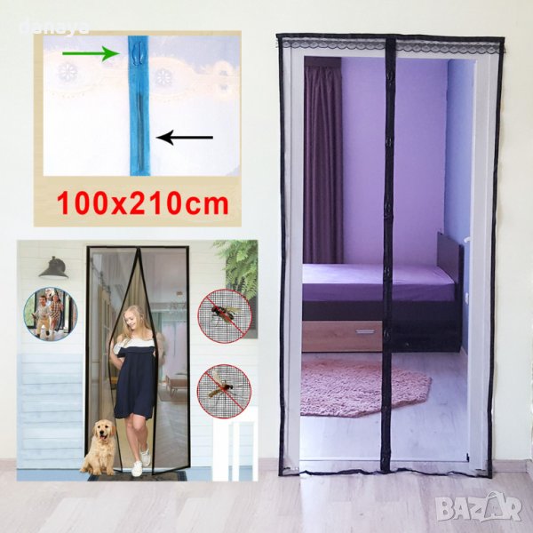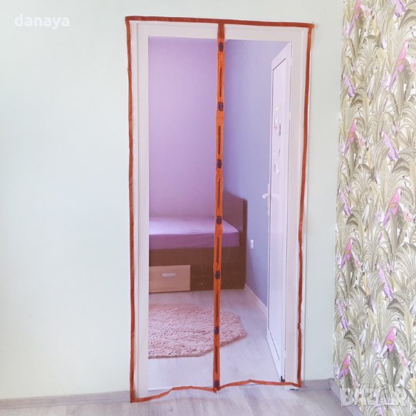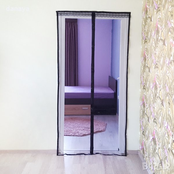 Комарник за врата с магнитно закопчаване. Завеса за врата с магнити, които се затварят сами, без да остават отвор, през който да минават насекомите. Магнитната мрежа предпазва от комари, мухи, оси, пчели и всякакви други насекоми. Благодарение на магнитните закопчалки, може да се влиза свободно.