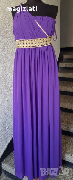 Нежен ефирен шифон с подплата, цветът е лилав с орнаменти на колана в цвят "злато"