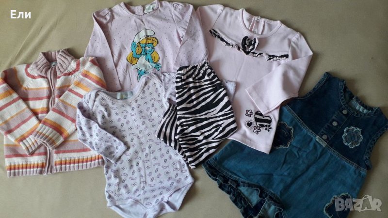 Лот - комплект за г-ца - само изпран, сукман без забележки, блузка и боди с нормални следи от употреба, подарък топла жилетка, едното зъбче на ципа е счупено и малко по-трудно се закопчава. Цена 12лв за лота.
