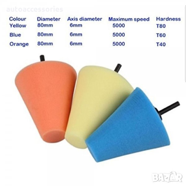 Професионални конусни гъби за полиране, идеални за полиране на труднодостъпни места, например във вдлъбнатините на джантите, накрайниците за ауспух и др.