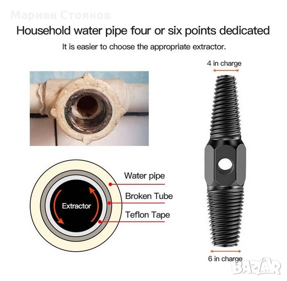 Екстрактор за тръби шпилковадач за скъсани ВиК части 1/2 3/4 Комбиниран