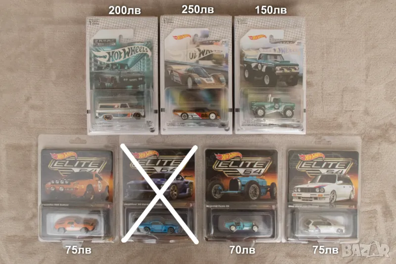 Колекционерски модели на марката Hot Wheels от сериите Car Culture, Fast & Furious Premium, Entertainment, Elite64, RLC, NFT Series, Monster Trucks, Team Transport, CC 2-Pack и други.