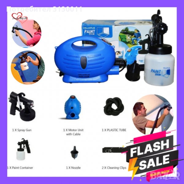 -спестявате пари , защото не изхабявате и капка боя, не си купувате – четки , мечета, кофи, валяци ,дръжки за боядисване и други консумативи. Забравете разплискващите се кофи и вани за боя! Машина за боядисване Пейнт зуум - пистолет за супер бързо и гладко боядисване с професионална прецизност! -3 режима на пръскане - за вертикално или хоризонтално боядисване -регулируема ширина на разпръскване -прецизно боядисване на трудно достъпни места -за всякакви бои и повърхности! С Машина за боядисване Пейнт зуум боядисвате лесно и удобно и едновременно -спестявате пари, -изразходвате по-малко боя -покривате фино, гладко и равномерно Пистолетът за боядисване Paint Zoom е направен от висококачествени, супер здрави и ултра леки материали и мощен мотор от 650W . Боядисвате с всички видове бои, върху всякакви повърхности: стени тухли ламперия бетон масивно дърво и др.
