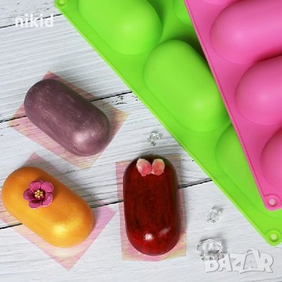 8 овални заоблени рулца капсули силиконов молд форма калъп гипс сапун мус десерт шоколад кексче → Обява 33736920