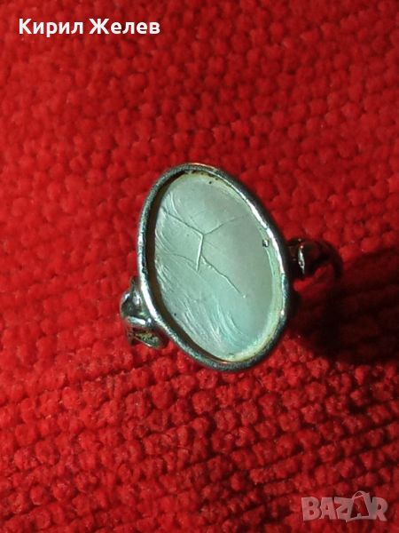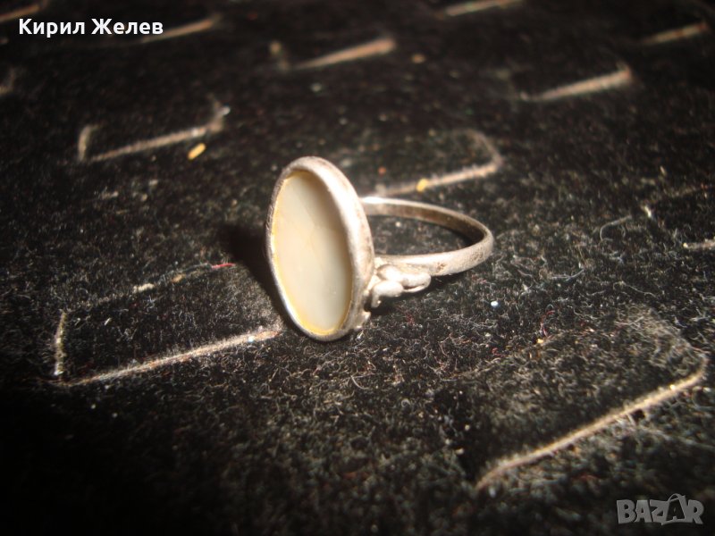 СТАР 19 ВЕК СРЕБЪРЕН СЕДЕФЕН ПРЪСТЕН РЪЧНА ИЗРАБОТКА УНИКАЛНО РЕТРО БИЖУ ВИСОКА ПРОБА СРЕБРО 17221