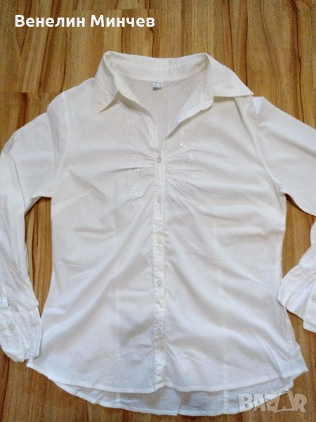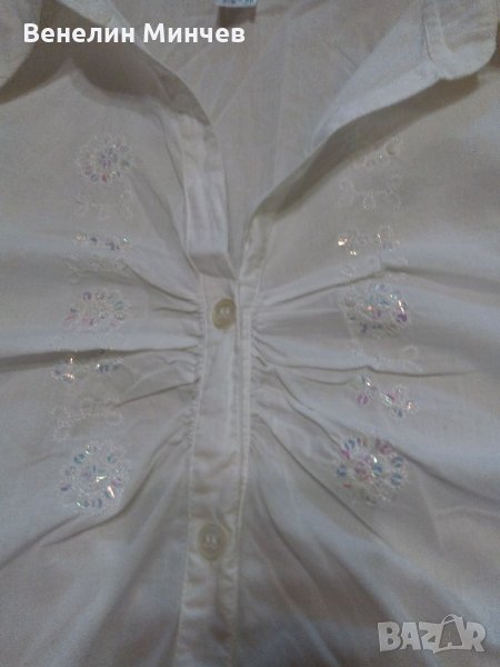 1. Дамска бяла риза с бродерия и нежни лутурки, размер 40.