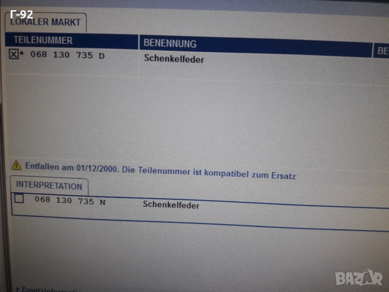 068130735N=D**NEU**VAG**VW AUDI**Оригинална пружина за Горивна помпа**
