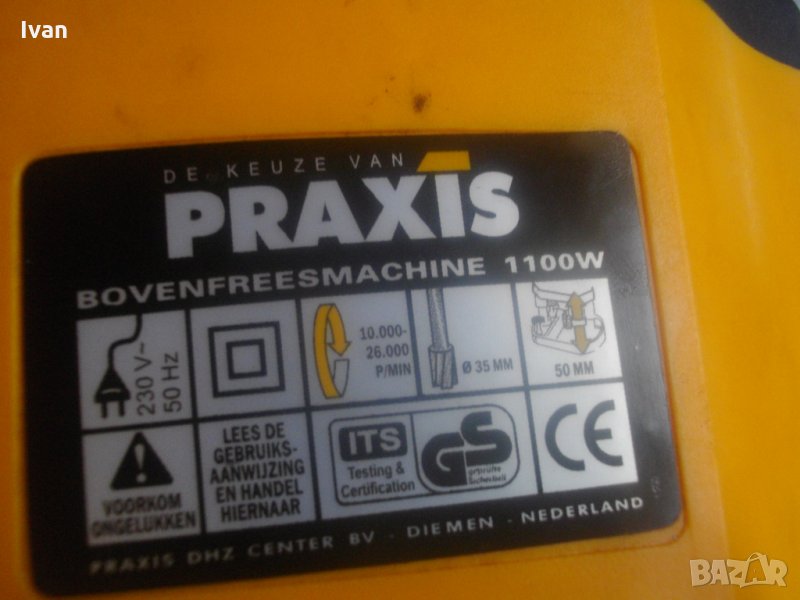 Холандска професионална оберфреза на Праксис с ход 50мм и възможност за работа с фрезер ф 35 мм, упоменато на маркировките.Марка и модел на машината -PRAXIS BFM 1100.Производство - оригинално Холандия - Nederland- упоменато на маркировките.