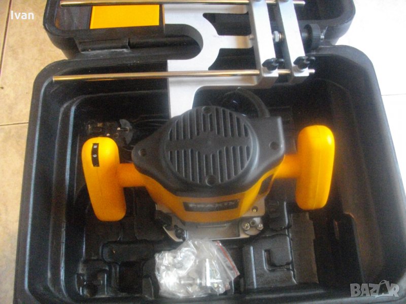 Фрезата е прибрана в оригиналният си твърд пластмасова куфар с метални копчалки, от които едната липсва, но другата държи здраво и стабилно.