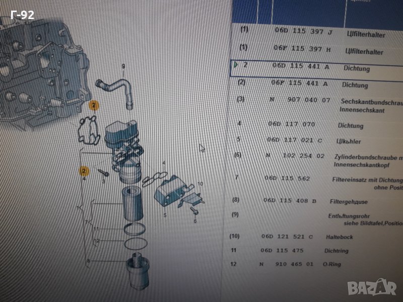 **Уплътнение, корпус за масления филтър**