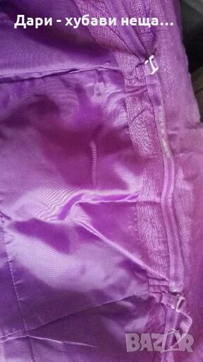 Реалния цвят е на втората снимка. Страхотна лилава рокля от много мек на допир плат, с лека лъскавина и релеф.Състав на плата:56%полиамид и 44%вискоза.Изцяло е с подплата(полиестер), а на бюстието има вградени вертикални силиконови ленти, за да не се свлича.Презрамките се регулират.Закопчава се с много дълъг удобен цип, в средата на гърба.
