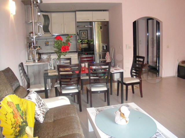 Без комисиона. Двустаен апартамент в к-с Врис на първа линия и с директна гледка към морето. Комплексът е на 100 м. от плажа, също така работи целогодишно, предлага много удобства - три басейна, два ресторанта, лоби бар, фитнес и СПА. Жилището е обзаведено с нови мебели по дизайнерски проект, състои се от дневна с кухненски бокс, спалня, баня с тоалетна и балкон. Годишната такса за поддръжка в комплекса е 8 EUR /кв.м