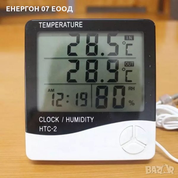 Удобна Метео станция HTC-2, с Измерване на ВЪНШНА , Вътрешна температура и
