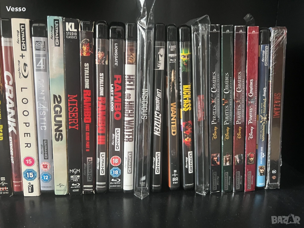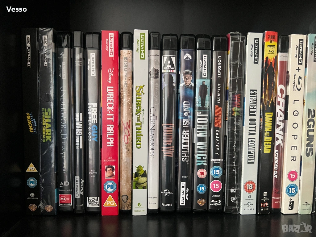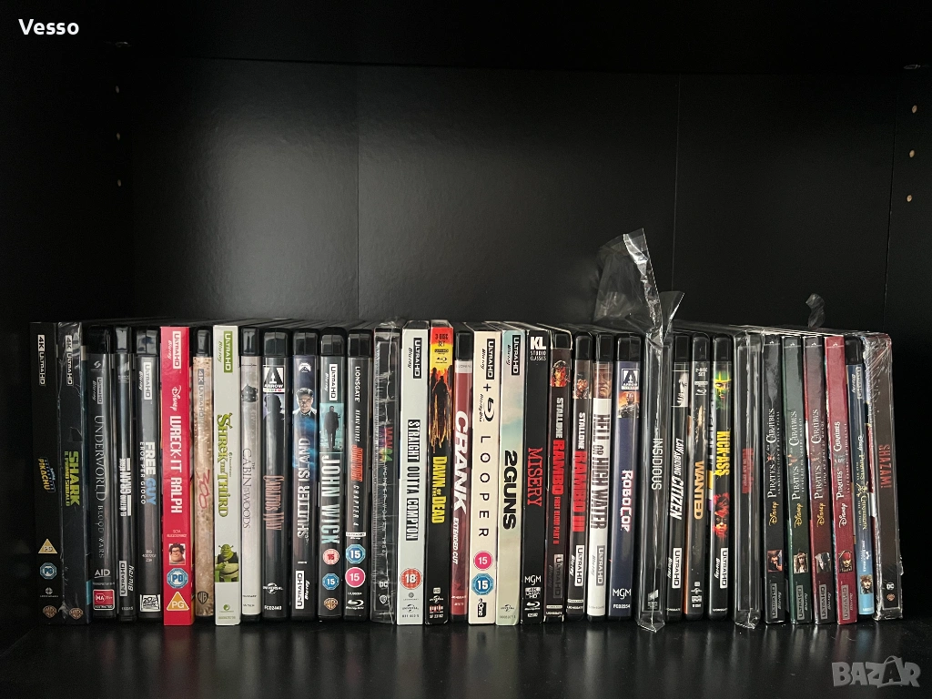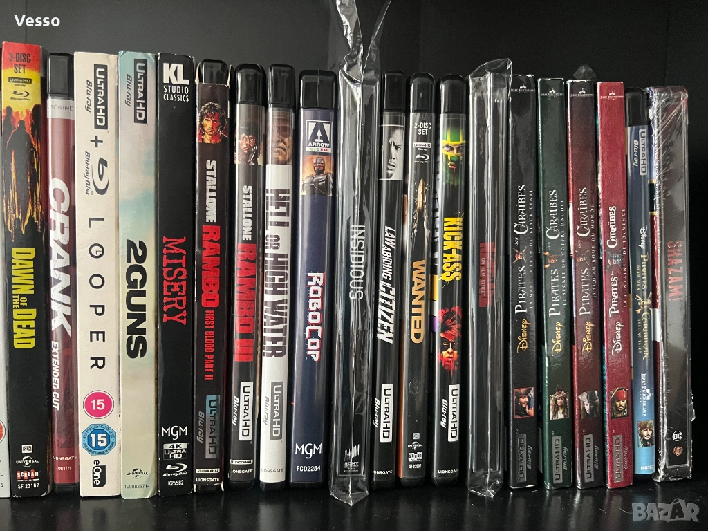 Продавам 4K UHD Blu-ray филми СЪС и БЕЗ БГ субтитри. Всички имат английско аудио и субтитри, някои имат и руски. Лична колекция. Всички са като нови, гледани по 1-2 пъти. Някои са и нови. Всички съдържат и втори диск с обикновен Блу-рей със съответния филм. Някои имат и по 3 диска. Актуален е списъкът, а не снимките.