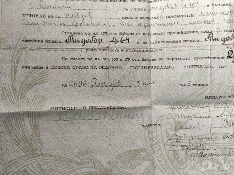 Продавам стар документ :Диплома Институт за прогимназиални учители Пловдив 1945 → Обява 33753106