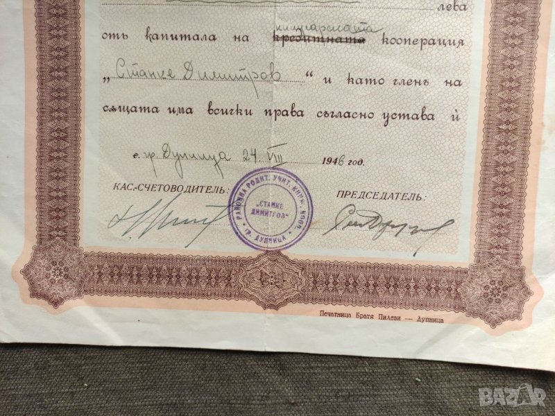 1000 лева книжарска кооперация Дупница 1945