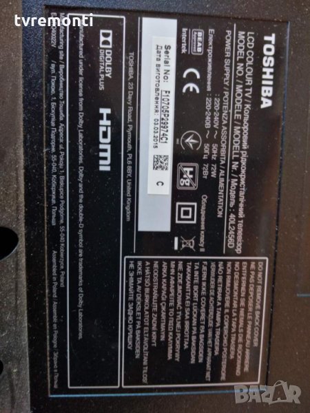 POWER BOARD PK101W0810I REV:01 forTOSHIBA 40L2456D Борда е гарантирано работещ Демонтиран от телевизор TOSHIBA 40L2456D със счупен дисплей дисплей V400HJ6-ME2 Rev.C1 тествана от нашия техник