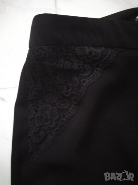 Дамски копринен панталони с декорация в предната част от дантела. Качествена изработка, без забележки в отлично състояние. Талия 76см., ханш 112см.,дължина 100см.
