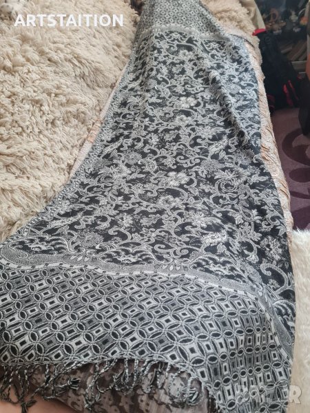 Голям кашмирен шал със сребърни ламени нишки, снимка 1 - Други - 33760937 Голям кашмирен шал със сребърни ламени нишки, снимка 2 - Други - 33760937 Голям кашмирен шал със сребърни ламени нишки, снимка 3 - Други - 33760937 1/3